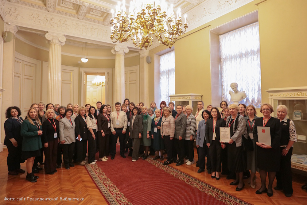 Почётный гражданин Санкт-Петербурга, Герой России, шестикратная олимпийская чемпионка, кандидат педагогических наук, депутат Законодательного Собрания Санкт-Петербурга Любовь Егорова зачитала приветственный адрес Председателя Законодательного Собрания Санкт-Петербурга Александра Бельского и вручила Благодарность Председателя Законодательного Собрания Санкт-Петербурга коллективу Президентской библиотеки «За большой вклад в сохранение культурного и исторического наследия, активную просветительскую деятельность, успешную реализацию социально значимых проектов».
