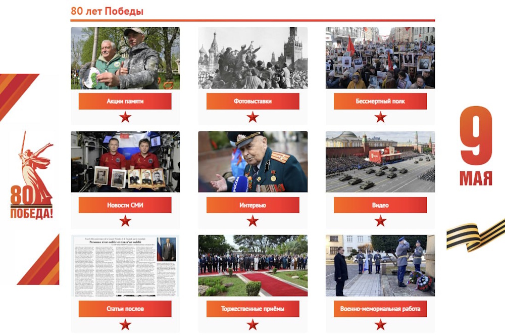 На портале также размещена подрубрика «Мероприятия российских загранучреждений в честь Дня Победы»