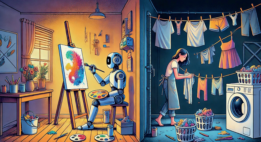 Автор Джоанна Мациевска написала в социальной сети X: «Знаете, какая самая большая проблема с тем, куда идёт развитие ИИ? Неверное направление. Я хочу, чтобы ИИ стирал и мыл посуду, а я могла заниматься искусством и писать, а не чтобы ИИ занимался искусством и писал, а я стирала и мыла посуду»