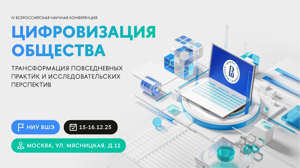 Институт статистических исследований и экономики знаний (ИСИЭЗ) НИУ ВШЭ приглашает к участию в IV Всероссийской научной конференции «Цифровизация общества: трансформация повседневных практик и исследовательских перспектив», которая пройдет 15-16 декабря 2025 г. в Москве в очном формате.