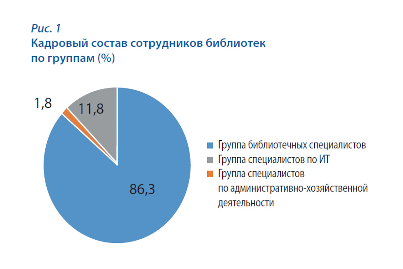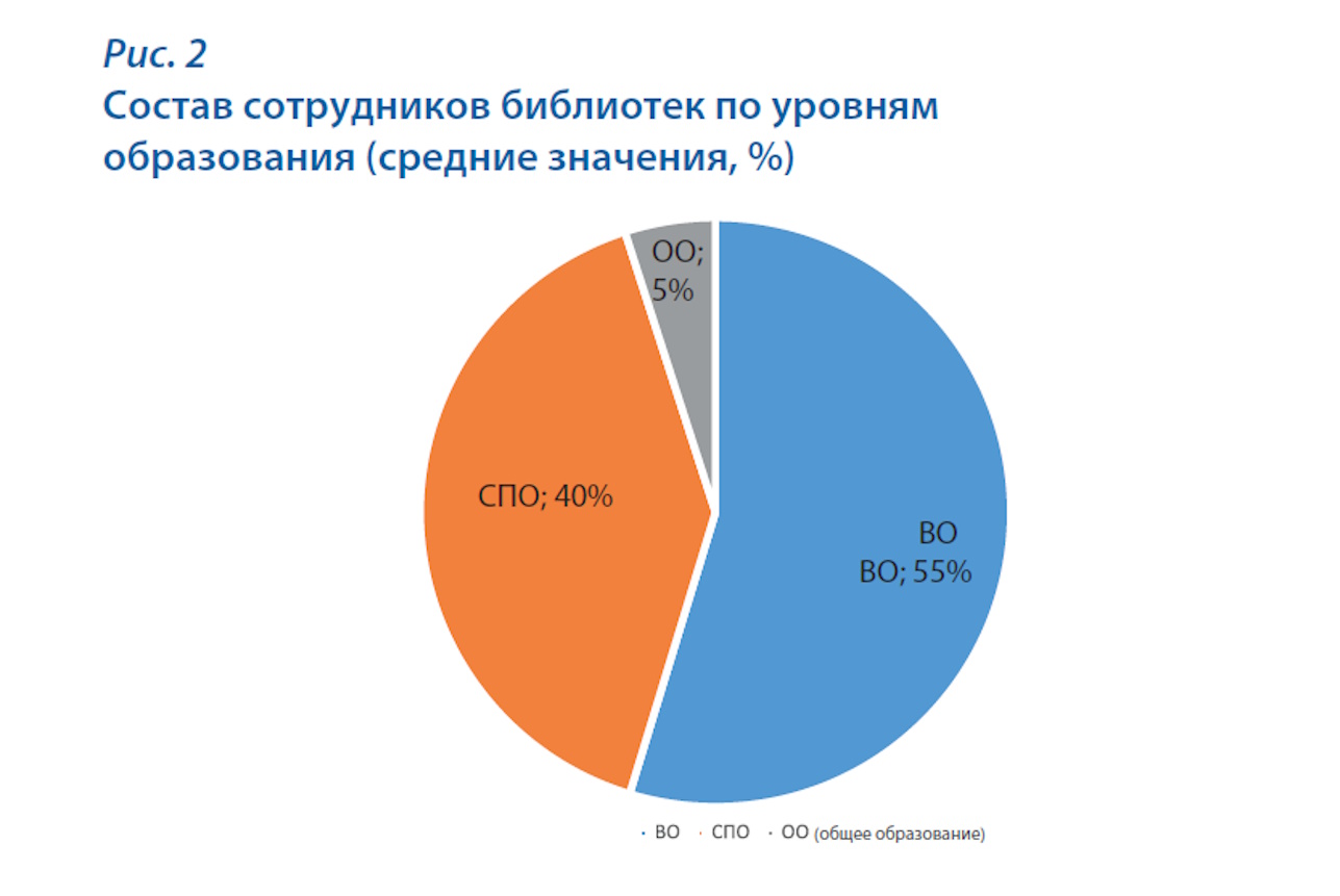 Данные о профессиональном составе штата библиотек и уровне образования работающих специалистов представлены на рис. 1 и 2.