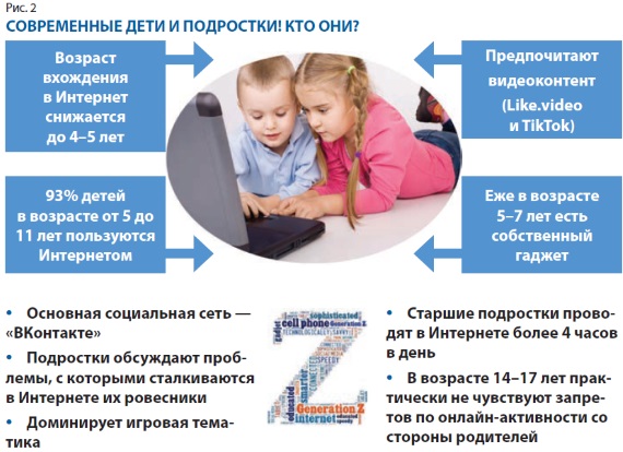 Наши дети — «цифровые»: они очень рано начинают пользоваться гаджетами. Возраст вхождения в Интернет снизился до четырёх лет, а для современного подростка грань между мирами онлайн и офлайн практически стёрта (рис. 2). С такими детьми мы работаем в том числе и в модельных библиотеках.