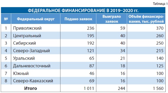 Как и предполагалось, реализация мероприятий национальной программы «Культура», направленных на создание модельных муниципальных библиотек, стала мейнстримом библиотечного дела. В 2019 г. в 44 субъектах РФ открыли 134 библиотеки. При бюджете в более чем 1 млрд рублей значительная часть средств (около 240 млн) поступила от регионов, муниципалитетов и спонсоров (табл. 1 и рис. 1). География проекта обширна: охват населения — свыше 13 млн человек. По оценкам экспертов, в некоторых библиотеках посещаемость выросла на 300%.