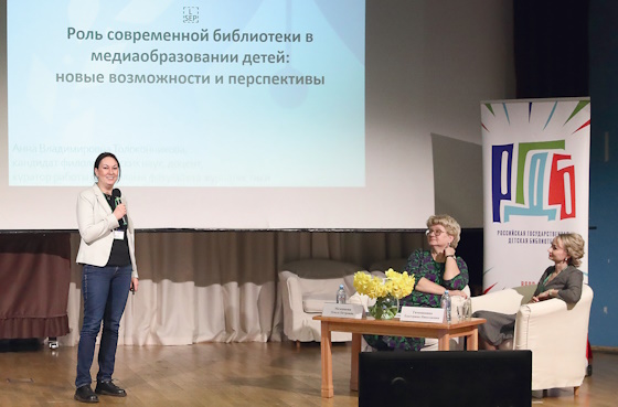 В докладах директора Департамента модельных библиотек Российской государственной библиотеки Т.С. АНАНОВОЙ «Библиотеки нового поколения: функциональность в дизайн-проектах детских библиотек» и заместителя декана факультета журналистики МГУ имени М.В. Ломоносова, доцента кафедры теории и экономики СМИ А.В. ТОЛОКОННИКОВОЙ было обращено внимание на организацию библиотечного пространства модельной библиотеки и на уроки медиаграмотности и обучение детей осознанному чтению.