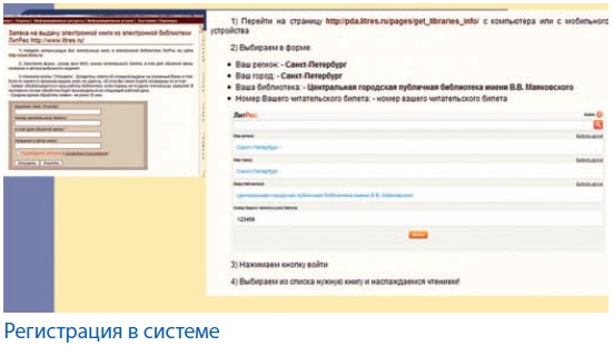 Работа с базой данных «ЛитРес» имеет свои особенности. Впервые магазин электронных книг и электронная библиотека «ЛитРес» предоставила возможность публичным библиотекам выдавать электронные издания читателям на дом. ЦГПБ им. В.В. Маяковского одной из первых в Санкт-Петербурге приобрела право доступа для своих читателей к этому информационному ресурсу. На сегодняшний день зарегистрированный в ЦГПБ читатель может получить любую электронную книгу из библиотеки «ЛитРес» на дом без посещения библиотеки. Единственное условие – наличие читательского билета библиотеки и любого электронного устройства, подключённого к Интернету.
