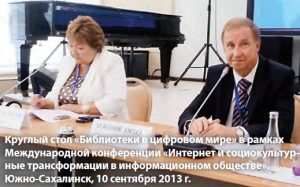 Должен добавить вот ещё что: 27–29 января в связи с моим приглашением от РБА и 200-летием со дня открытия Российской национальной библиотеки у нас в гостях в Санкт-Петербурге была Президент ИФЛА Синикка Сипиля. Мы обсудили большой круг проблем сотрудничества РБА с ИФЛА, состоялся круглый стол с участием Министра культуры РФ В.Р. Мединского, где мы рассматривали возможность проведения одного из конгрессов ИФЛА в России. Подобное предложение вызвало положительное отношение как Президента ИФЛА, так и нашего Министра культуры. Так что в ближайшее время РБА начинает прорабатывать этот вопрос, чтобы выйти с конкретными предложениями о проведении конгресса ИФЛА на территории России.