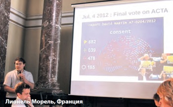 В первый тематический блок «Кампании за реформу авторского права: как улучшить доступ к цифровым документам» были включены четыре выступления. Олександр БУЛАЕНКО (Oleksandr Bulayenko, Франция) в докладе «Авторское право и доступ к творческим работам» представил исторический аспект развития авторского права, отметив тенденцию к ослаблению исключительности и указав механизмы облегчения доступа к информации для исследователей. Наблюдающиеся различия в длительности действия авторского права в мире и в ЕС существенным образом мешают развитию науки. Нужны сдвиги в развитии законодательства, расширение свободного использования информации для науки. Автором были отмечены необходимость комбинации исключений или ограничений с коллективным управлением правами, а также контроль и обеспечение прозрачности по действиям организаций коллективного управления.