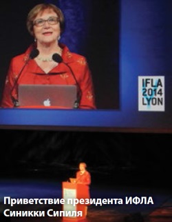 Мероприятия юбилейной 80-й Генеральной конференции и Ассамблеи Международной федерации библиотечных ассоциаций и учреждений (ИФЛА) прошли с 16 по 22 августа 2014 г. в г. Лионе (Франция). Конференция ИФЛА проводилась во Франции уже в шестой раз, а главная тема 2014 г. «Библиотеки, граждане, общества: вместе к знаниям» явилась логичным развитием темы президентской программы «Сильные библиотеки, сильные общества».