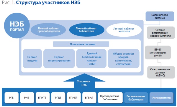 Структура НЭБ предполагает две разные системы: одна из них — сама НЭБ, вторая — Единый электронный читательский билет (ЕЭЧБ).