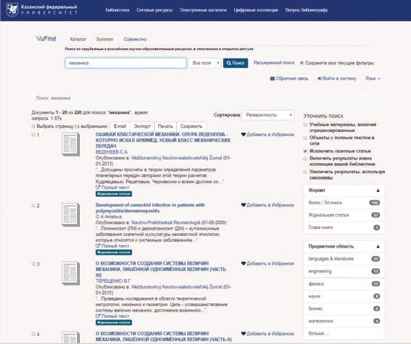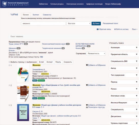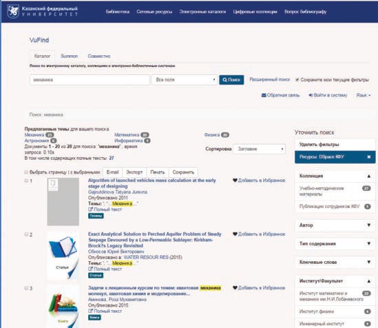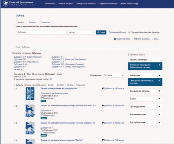 В частности, это книги и периодические издания, электронные журналы и книги из подписки университета, включая зарубежные издательские базы данных и отечественные ЭБС (рис. 3).