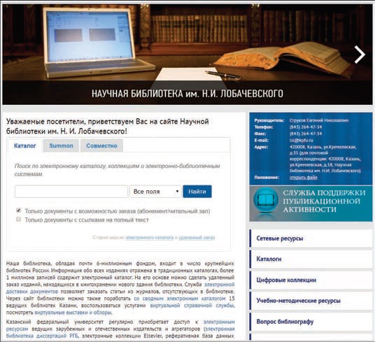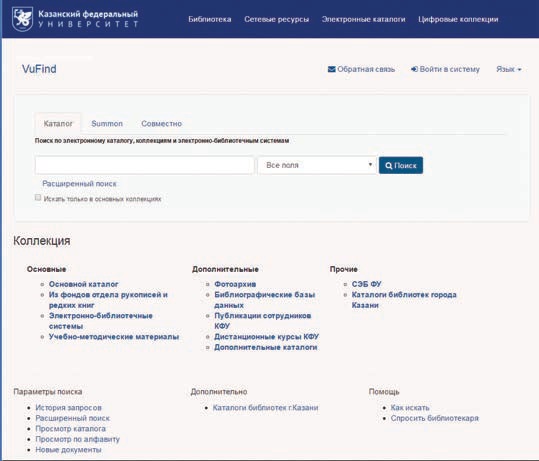На сайте библиотеки КФУ реализовано единое окно поиска по всем ресурсам, к которым университет имеет доступ (рис. 2).