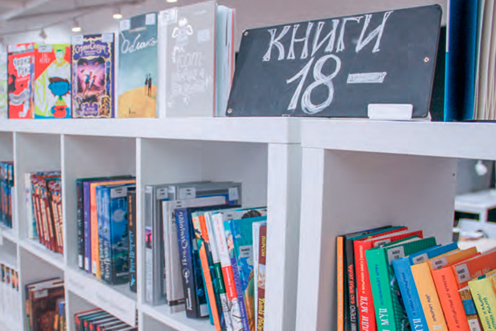 Первый из них — это стеллаж «18–». В библиотеке Oxта Lab нет стен, а значит, нет возможности сформировать закрытый детский отдел. Поэтому в пространстве нельзя находиться подросткам младше 14 лет без сопровождения родителей, так как взрослый фонд 18+ находится в открытом доступе. Подростки отказались в ситуации дезориентации: детские полки для них «слишком детские», взрослые — «слишком взрослые». Поэтому вместе с Ириной Батуевой, заведующей сектором обслуживания, мы сформировали стеллаж с условным названием «18–», где размещаем книги с маркировкой «12+» и «16+».