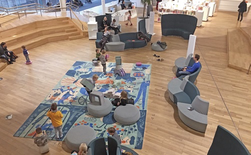 И есть за что! Всё, что только могла бы пожелать библиотека, разместилось на трёх бескрайних этажах: помещения для видеоигр, предусмотрительно закрытые в будни до 14:00, дабы не вводить школьников в искушение; бесплатные швейные машинки и 3D-принтеры (пользователи платят только за расходные материалы); бесконечные залы, пространства и закутки для всевозможного коворкинга; здесь можно «приготовить» трек в студии звукозаписи и абонировать кухню для публичного «исполнения» любимого соуса; можно забиться в уютный уголок или развалиться на просторе в зависимости от личных психологических наклонностей; здесь даже есть гендерно нейтральный туалет, кабинки которого приветливо открыты всем половым вариациям стремительно меняющегося мира без необходимости мучительного выбора, к кому индивид относит себя в данный момент или собирается отнести в будущем.