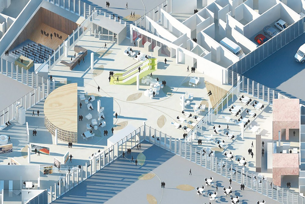 По мнению архитектора, это чередование прекрасно воплощает в себе призвание библиотеки: воспитывать интерес и пробуждать любопытство, изучать его; предлагать и пробуждать; создавать фонды, смотреть вперёд; заблуждаться и находить.