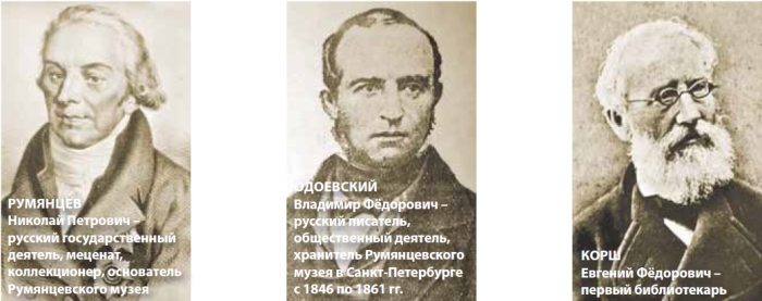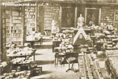 — Действительно, до апреля 1863 г. библиотека уже существовала, но прежде она располагалась в Санкт-Петербурге, при Румянцевском «музеуме». Граф Н.П. Румянцев собрал ценнейшую коллекцию древних рукописей, книг, картин, нумизматическую, минералогическую коллекции, и завещал это богатство «на пользу Отечеству и благое просвещение». В 1826 г. канцлер скончался, а в 1828 г. вышел указ императора Николая I об учреждении Румянцевского музеума с библиотекой в его составе. Но в Санкт-Петербурге в это время уже была Императорская библиотека, ныне РНБ, и посетителей в ней было больше, чем в этом вновь учреждённом «музеуме». Государство не очень охотно выделяло деньги, и к 1860 г. Румянцевский музей в Санкт-Петербурге стал приходить в упадок. При этом в Москве того времени не было ни одного публичного музея и ни одной публичной библиотеки, поэтому князь В.Ф. Одоевский написал письмо Александру II с предложением перевести библиотеку в Москву.
