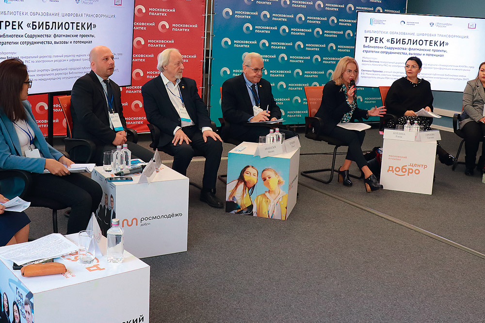 Трек «Библиотеки» был посвящён обсуждению флагманских проектов и стратегий сотрудничества библиотек и национальных профессиональных ассоциаций СНГ с авторами, издательствами и агрегаторами контента в целях улучшения библиотечно-информационного обслуживания и развития новых форм работы. Особое внимание уделялось вопросам сохранения культурного наследия и его потенциала для укрепления социокультурных отношений и формированию у молодого поколения уважения к общечеловеческим ценностям.