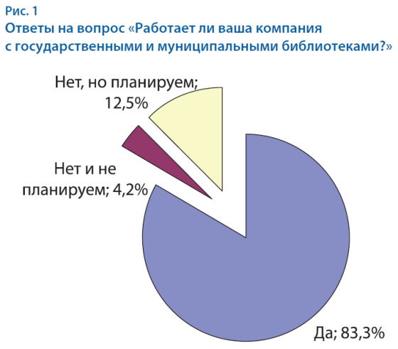 Как и в прошлом году, подавляющее большинство респондентов (83,3%, рис. 1) сотрудничают с библиотеками по вопросу комплектования фондов.