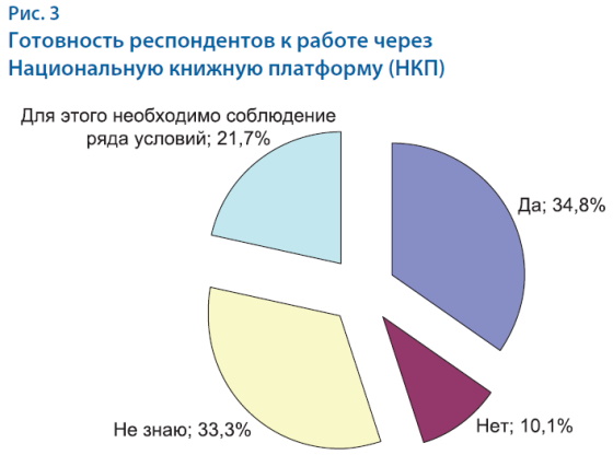 Готовность издателей работать через НКП иллюстрирует рис. 3. Обращает на себя внимание тот факт, что в 2022 г. больше респондентов, чем в 2021-м (21,7%), считают, что для этого необходимо соблюсти ряд условий.