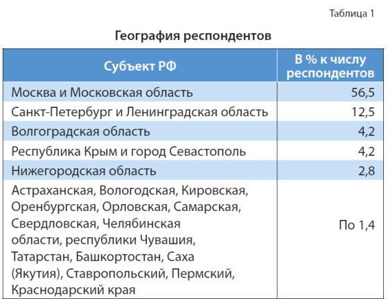 В исследовании приняли участие 144 компании, представляющих 23 региона России. Как показал анализ результатов мониторинга, география респондентов (табл. 1) по сравнению с прошлым годом изменений не претерпела. Всё так же лидируют издатели и книготорговые компании столичного региона, на втором месте остаются респонденты из Санкт-Петербурга и Ленинградской области.