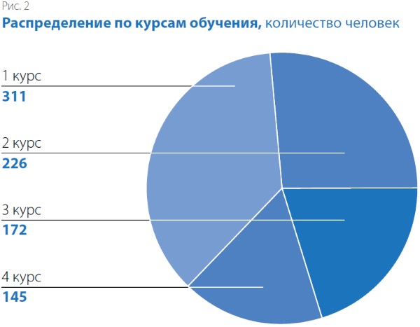 Большинство студентов, принявших участие в опросе, на момент анкетирования заканчивали первый курс (рис. 2).