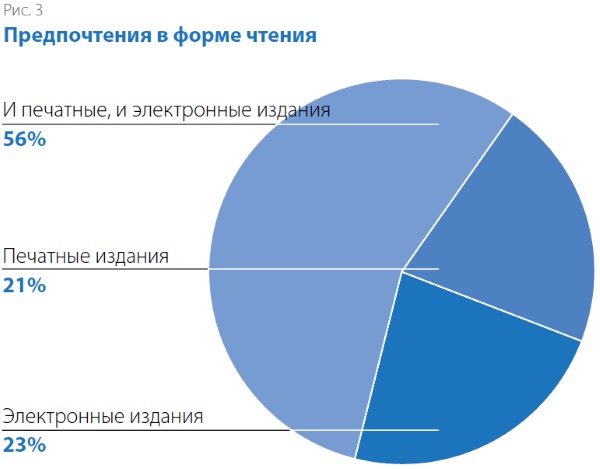 Как показал анализ, в библиотеке востребованы и печатная, и электронная формы учебника, хотя современный студент постепенно уходит в цифровую среду. 182 респондента предпочитают печатные издания, электронные учебники и журналы читают 196 человек. И печатными, и электронными изданиями пользуются 476 студентов (рис. 3). Очевидно, что дальнейшее соблюдение баланса в приобретении печатных и электронных изданий позволит библиотеке удовлетворять запросы своих пользователей.