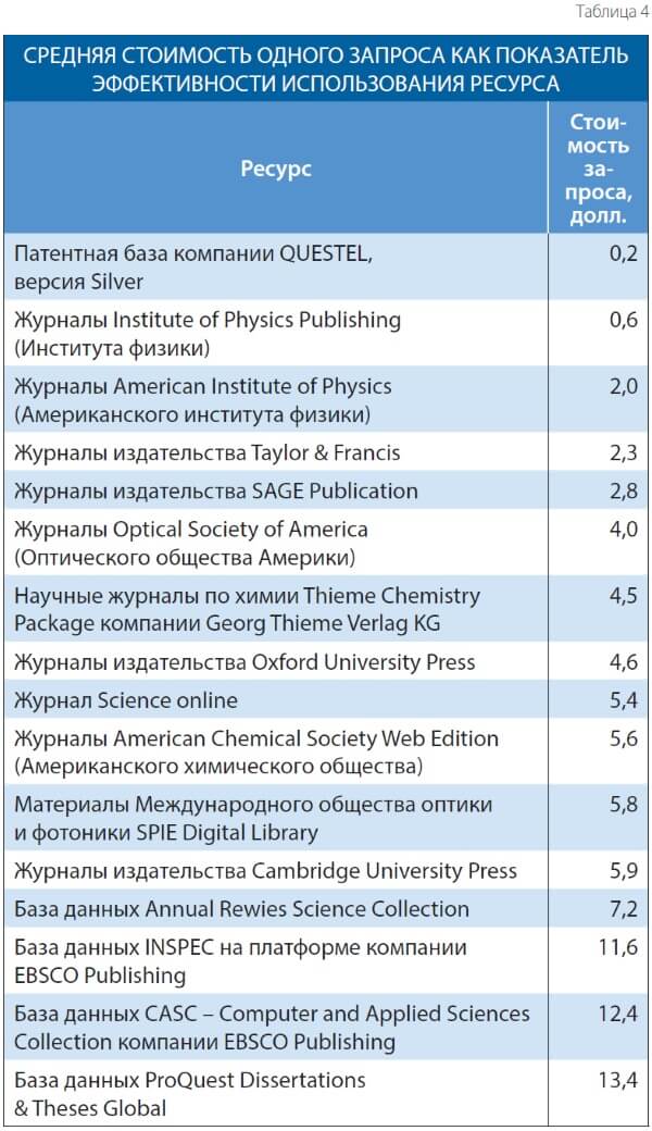 По информации А. Кузнецова, в мире принято считать, что пять долларов за один загруженный документ — это нормальный показатель эффективности. В России эффективно (от одного доллара до пяти) работают лишь 30 организаций, а дальше идёт «хвост». Сотрудники ГПНТБ России ежегодно анализируют его состав, пытаясь поменять организации. Этот метод оптимизации достаточно эффективный, но трудоёмкий. В любом случае главный показатель эффективности — это статистика использования.