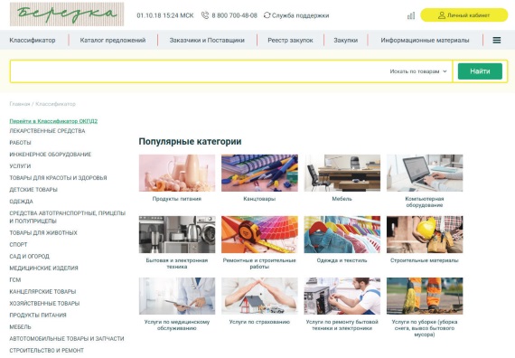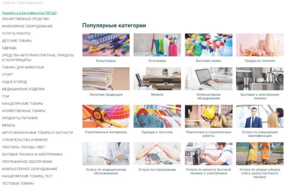 Классификатор товаров, работ и услуг ЕАТ (далее — классификатор) — это систематизированный перечень, основанный на Общероссийском классификаторе продукции по видам экономической деятельности (ОКПД2) ОК 034-2014, включающий характеристики ТРУ и соответствующие им шаблоны.