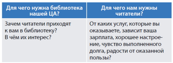 Что общего есть у всех ваших читателей между собой и библиотекой? Чтобы найти общие ценности, ответьте на два блока вопросов. Совпадения ответов и станут общими ценностями.