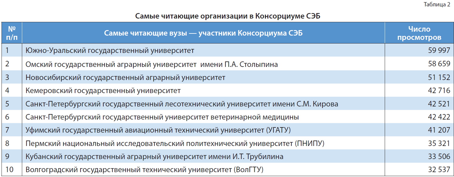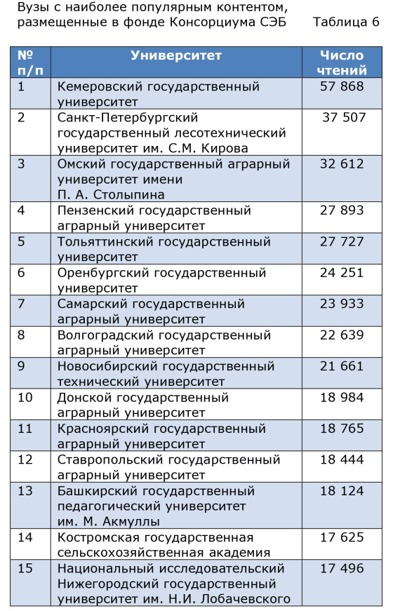 В рейтинге самых читающих вузов уже всего Консорциума СЭБ, а не отдельных отраслевых библиотек к этому списку также добавились: