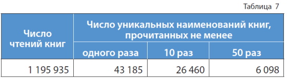 Именно эта активность определяет наиболее масштабные цифры за 2021 год: общее количество прочтений книг, размещённых в фонде Консорциума, и число уникальных наименований книг, которые хотя бы раз были прочитаны в прошлом году (табл. 7).