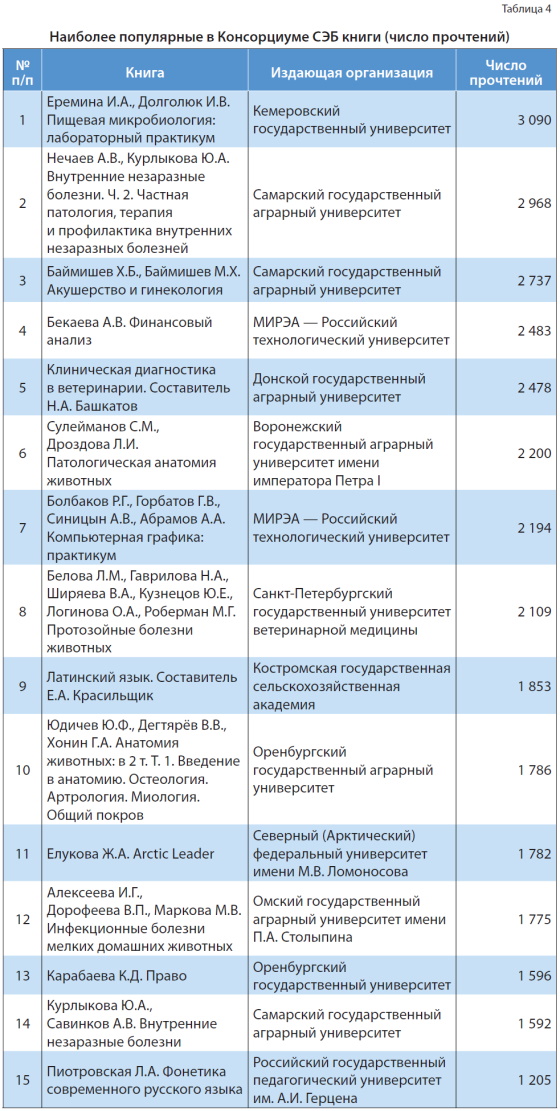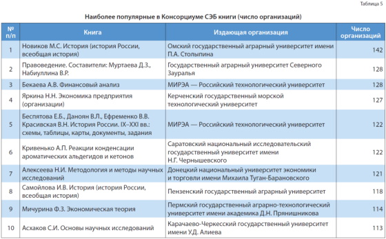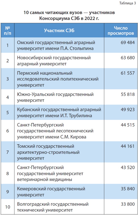 Топ-10 вузов, откуда читатели больше всего обращались к литературе фонда Консорциума СЭБ, представлен в табл. 3.