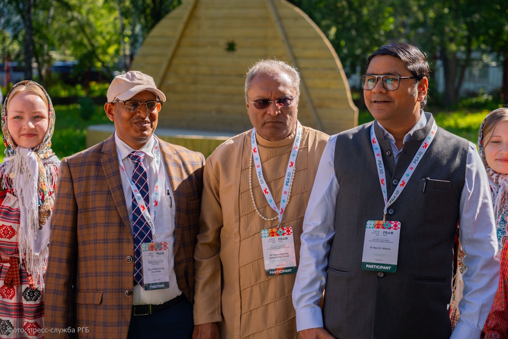 После обеда культурная программа продолжилась в расположенном под открытым небом архитектурно-этнографическом музее-заповеднике «Лудорвай». Здесь гости окунулись в атмосферу удмуртской культуры, осмотрев традиционные постройки, включая крестьянские усадьбы, ветряную мельницу и культовые сооружения. Экскурсию провел местный гид в ярком национальном костюме, который рассказал делегатам об обычаях, обрядах и быте удмуртского народа. Живописные пейзажи и аутентичная архитектура не оставили гостей равнодушными — они с удовольствием делали фотографии на память. Затем индийскую делегацию ждала дегустация традиционных удмуртских блюд и напитков, где они смогли оценить богатство местной кухни. Завершилась программа мастер-классом по народным танцам и играм, в которых гости приняли активное участие.