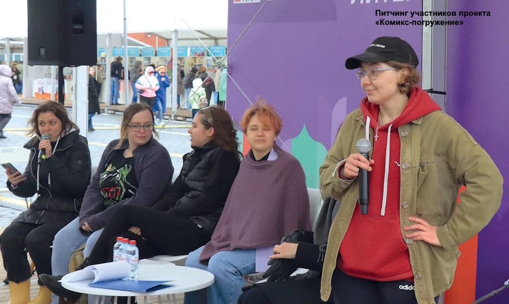 В течение конкурсного отбора поступили 25 заявок от художников, в проект мы отобрали 10. Конкурс проходит в два этапа. В мае состоялся первый —практикоориентированный интенсив, где начинающие авторы получали теоретические и практические знания от экспертов и выполняли творческие задания, а его итогом стал питчинг проектов участников на фестивале «Красная площадь» в июне. В состав жюри питчинга «Комикс-погружения» вошли продюсеры и сценаристы киностудий, специалисты ИГ «ЭКСМО-АСТ», представители индустрии моды. Среди них директор стратегических коммуникаций ИГ «ЭКСМО-АСТ» Екатерина Кожанова, продюсер киностудии «Красный квадрат» Рафаил Мансуров, продюсер киностудии КАРГО Сергей Востриков, сооснователь бренда Veter Sport Антон Иванов, создатель сообщества предпринимателей швейного бизнеса «Человек, который шьёт» Антон Гуреев и многие другие. Участникам представилась уникальную возможность получить комментарии от экспертов и на основании их в дальнейшем доработать свои истории.