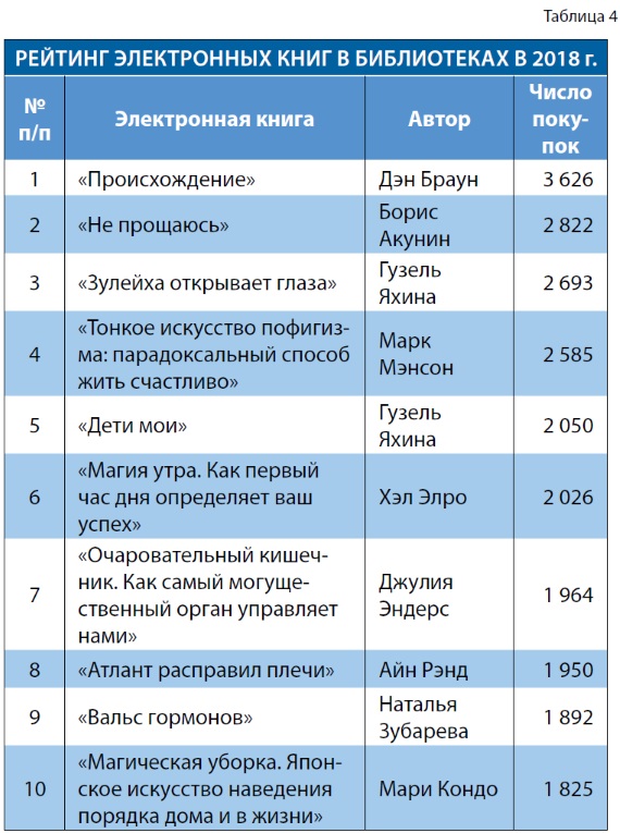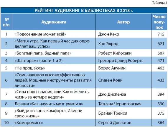 Топ-10 электронных и аудиокниг представлен в табл. 3 и 4.