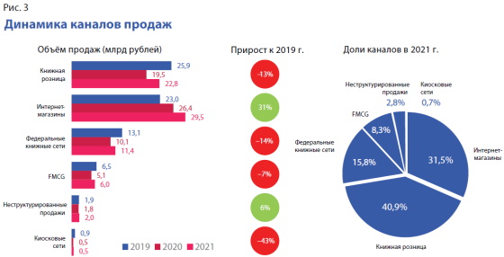 Лидером по продажам цифровых книг в «ЭКСМО-АСТ» является художественная литература. При этом продажи аудиоизданий в 2020 г. уже превысили 250 млн рублей, рост составил 75%. «Читай-город — Буквоед» планирует продолжать открывать новые магазины. В прошлом году, несмотря на все сложности, было открыто порядка 30 торговых предприятий, в текущем появится ещё примерно 60.