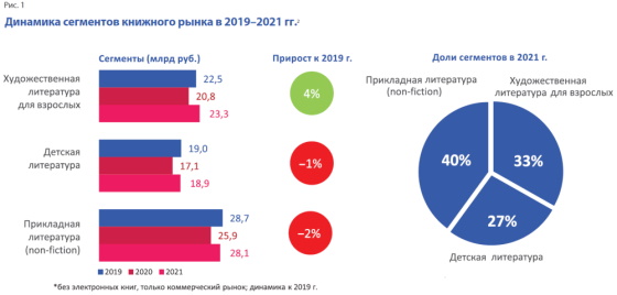 (на 10%) литература, классика и фантастика. Существенный вклад вносит молодёжное чтение, сегмент Young Adult — проза