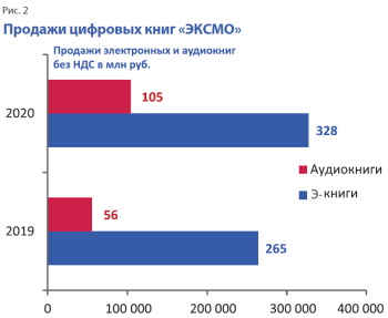 Ключевой драйвер рынка — рост цифрового потребления: и электронных, и аудиокниг. В «ЭКСМО» направление аудиокниг увеличилось практически в два раза; на 2021 год запланирован прирост на 70% (рис. 2).