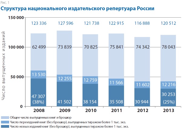Однако и официальные цифры несколько лукавят. Так, в число выпущенных изданий входят не только книги, но и брошюры. Книги составляют 94% — 105 тыс. наименований. Аналогичная ситуация с полноценными изданиями: если из общего числа книг исключить выпущенные тиражом менее 1 тыс. экземпляров, число названий значительно сократится.