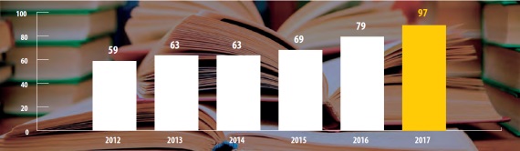 Выручка группы компаний «Просвещение» в 2017 г. составила 17,4 мрлд рублей, а в совокупности с проектом «Просвещение-регион» превысила 20 млрд. За год было выпущено 97 млн экз. учебных книг, это на 18 млн больше, чем в 2016‑м. По оценке главы холдинга, в условиях работы по госконтрактам цена изданий практически не повысилась, а рост был обеспечен исключительно увеличением тиража. При этом, поскольку Федеральный перечень не расширялся, а число школьников увеличилось за год лишь на 2 %, существенную долю в росте тиража сыграла дополнительная литература. Речь идёт о так называемом шлейфе: специализированных изданиях или региональных проектах (например, многие республики хотят иметь собственный учебник по истории своего региона). Кроме того, ощутимый вклад дают решебники и задачники, а также пособия для подготовки к ЕГЭ. На финансовый результат существенно повлияла антипиратская деятельность издательства. Рынок контрафакта уменьшился, поэтому объёмы лицензированной продукции выросли.