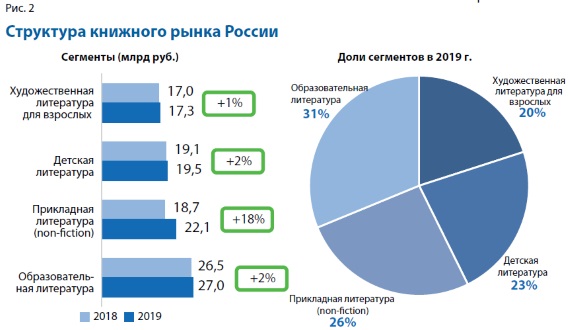 Если говорить о сегментах рынка, то лучшие показатели продемонстрировала прикладная литература (рис. 2).