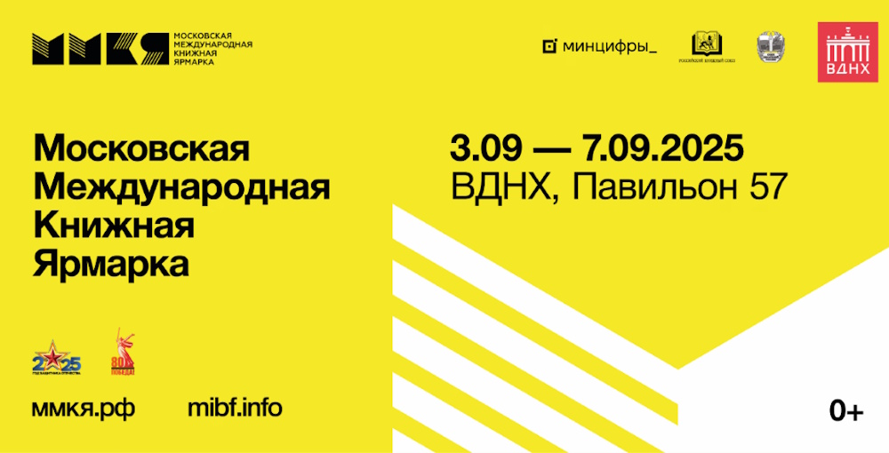 38-я Московская международная книжная ярмарка (ММКЯ) пройдёт с 3 по 7 сентября 2025 года на ВДНХ в Павильоне 57. В рамках ММКЯ в третий раз будет проведена Московская международная детская книжная ярмарка.