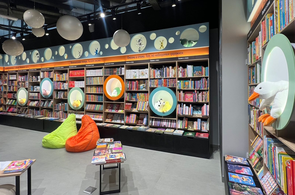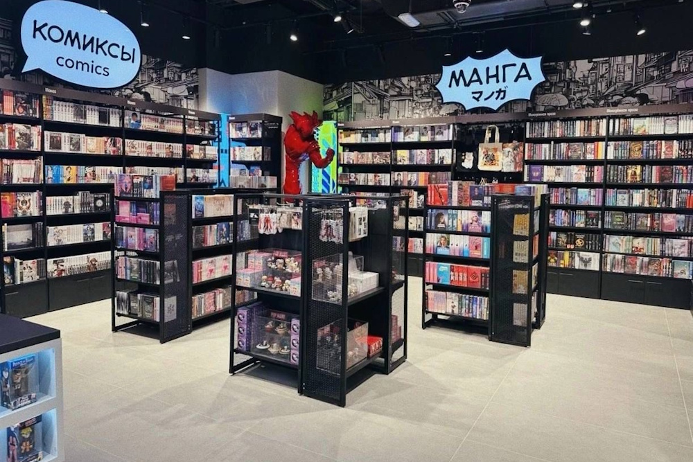 - Пространство для вдохновения. Магазин организован по принципу вовлекающего пространства, вызывающего интерес и желание заглянуть в каждый его уголок. Появились уютные мини-гостиные, выделенные секции для комиксов и манги. Трансформируемая мебель и раздвижные островные зоны позволяют корректировать пространство под встречи с авторами, мастер-классы и клубы по интересам. При создании намеренно ушли от формата open space.