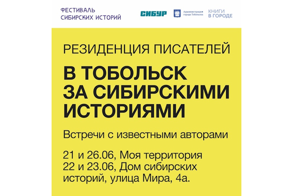 С 21 по 26 июня звезды литературы едут в Тобольск в творческую резиденцию изучать город и Сибирь, а также проведут несколько публичных встреч, которые откроют программу Фестиваля сибирских историй. Его основные мероприятия запланированы осенью, 13–15 сентября 2024 года.