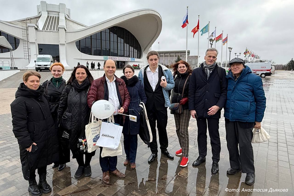 Но основной вклад в российский день – в численном отношении как минимум – сделали писатели, 14 марта приехавшие в Минск на «Книжном поезде». Стартовавший днем ранее в Петербурге проект, приуроченный к 80-летию Победы в Великой Отечественной войне, перед тем как добраться до Москвы, Волгограда и других российских городов, решил заглянуть в столицу Белоруссии. А там его прямо на перроне шумно встретили с музыкой и флагами, заодно опросив под камеры устроителя всего этого счастья – основателя книжной сети «Буквоед» и президента Фестивального движения «Книжные маяки России» Дениса Котова.