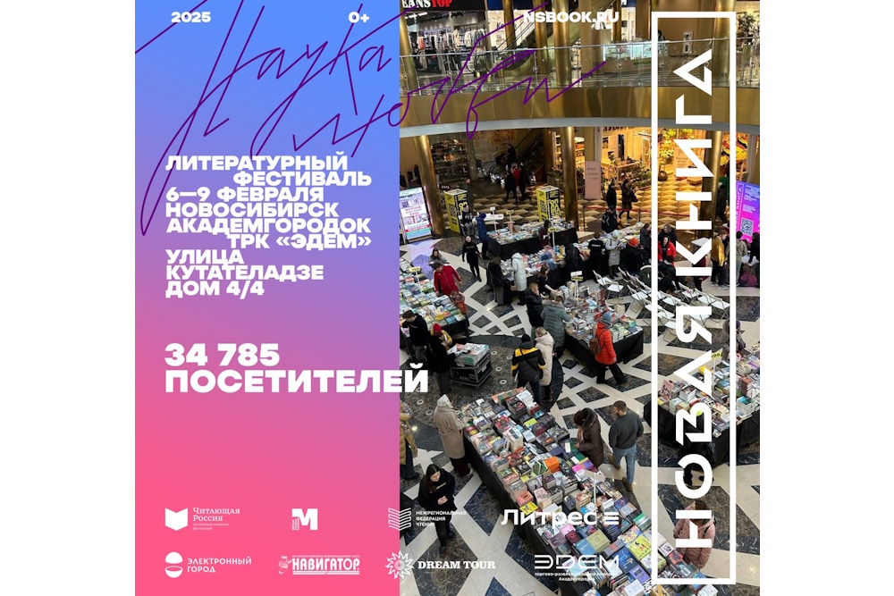 Почти 35 000 человек посетило литературный фестиваль «Новая книга. Академгородок» в Новосибирске, который впервые проходил в ТРК «Эдем» (Академгородок, ул. Кутателадзе, 4/4). Данные предоставлены администрацией ТРК «Эдем».