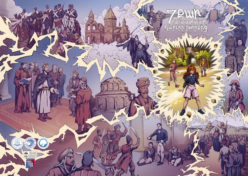 «Герои комикса – не просто персонажи, а проводники по лабиринтам многовековой истории Армении, где каждый сюжетный поворот связан со старинной дворовой игрой «7 камней», – рассказывает сценарист и продюсер студии Айк Варданян, История создания проекта могла бы стать отдельным комиксом, настолько интересным был процесс. Конечную версию сценария в итоге мы сделали меньше чем за неделю. За месяц 10-12 художников нарисовали все сюжетные линии. Отдельные исторические эпизоды создавались разными иллюстраторами, чтобы стилистически подчеркнуть уникальность эпох».