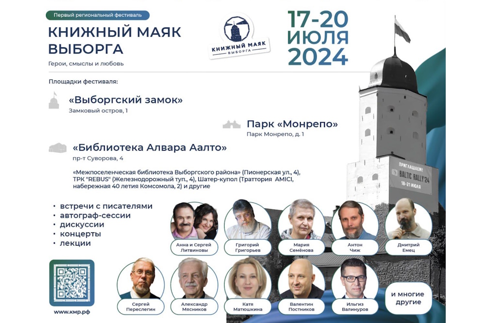 Фестивальное Движение «Книжные маяки России» представляет знаковое книжное мероприятие этого лета - Первый региональный фестиваль «Книжный Маяк Выборга», который пройдет с 17 по 20 июля 2024 года, при поддержке Правительства Ленинградской области, в центре одного из самых красивых исторических городов Северо-Запада нашей страны. Девиз фестиваля: «Герои, смыслы и любовь». «Книжный Маяк» открывает новый форпост смыслов!