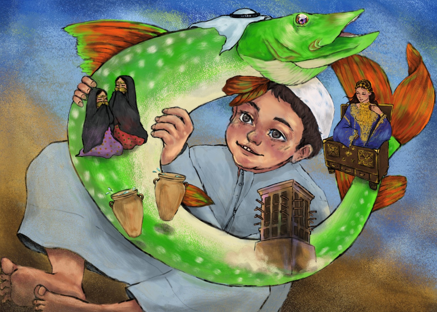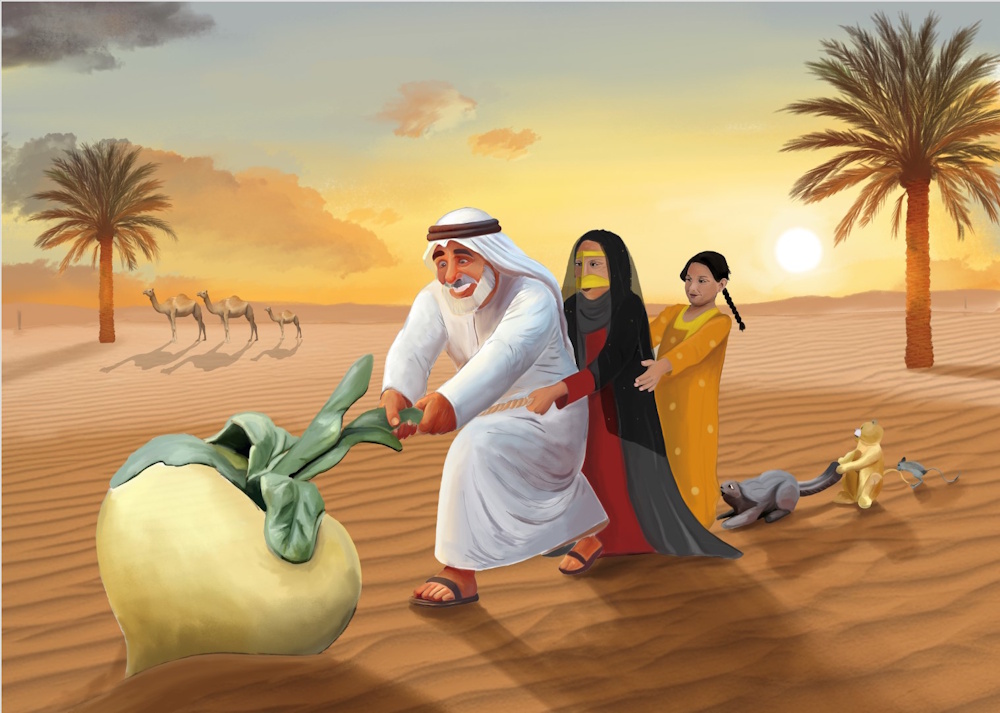 Художницы из ОАЭ нарисовали героев русских народных сказок: Фатма Файруз – «По щучьему велению», Асма Саид Аль Румайти – «Колобок», Хесса Аль Заруни – «Репка», Алия Альхаммади – «Сивка-Бурка» и Латифа Бин Катта – «Теремок».