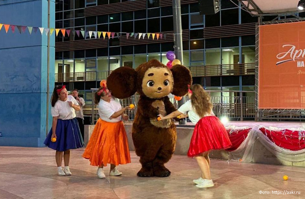 Гостей творческого вечера, посвященного открытию фестиваля, порадовала также ростовая кукла Чебурашки, подаренная Артеку в честь 100-летия Ассоциацией анимационного кино и киностудией «Союзмультфильм». Особым украшением мероприятия стали зажигательные выступления коллектива «LifeStyle» из Бухары (Узбекистан) и народного ансамбля современного танца «Антре» из Республики Башкортостан.