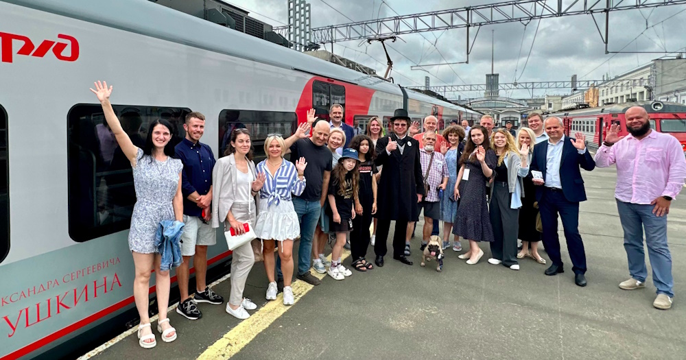 Уникальный рейс фирменного электропоезда «Пушкинская ласточка» на фестиваль «Книжный Маяк Выборга» отправился от платформы Финляндского вокзала, благодаря помощи Комитета по транспорту Ленинградской области и партнеров фестиваля ОАО «Российские железные дороги». На нем в Выборг в числе новой Книжной экспедиции поехали читатели, журналисты и известные писатели: Валентин Постников, Андрей Буровский и др. «Пушкинская ласточка» на «Маяк» - это продолжение большого Всероссийского проекта «Книжный поезд», который проехал в прошлом году от Санкт-Петербурга до Владивостока, в рамках Фестивального Движения «Книжные маяки России», при поддержке Российского книжного союза.